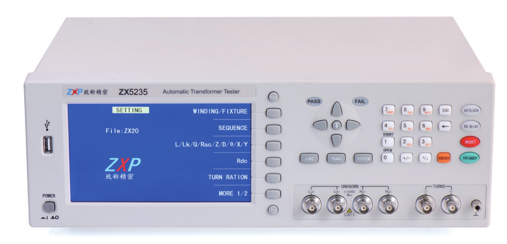 ZX5235是本公司在新一代變壓器綜合測試儀ZX2789的基礎上,為 適應廣大電源變壓器用戶推出的,操作習慣與*5235高度兼容,工裝夾 具與*5220完全兼容的20P變壓器綜合測試儀器。